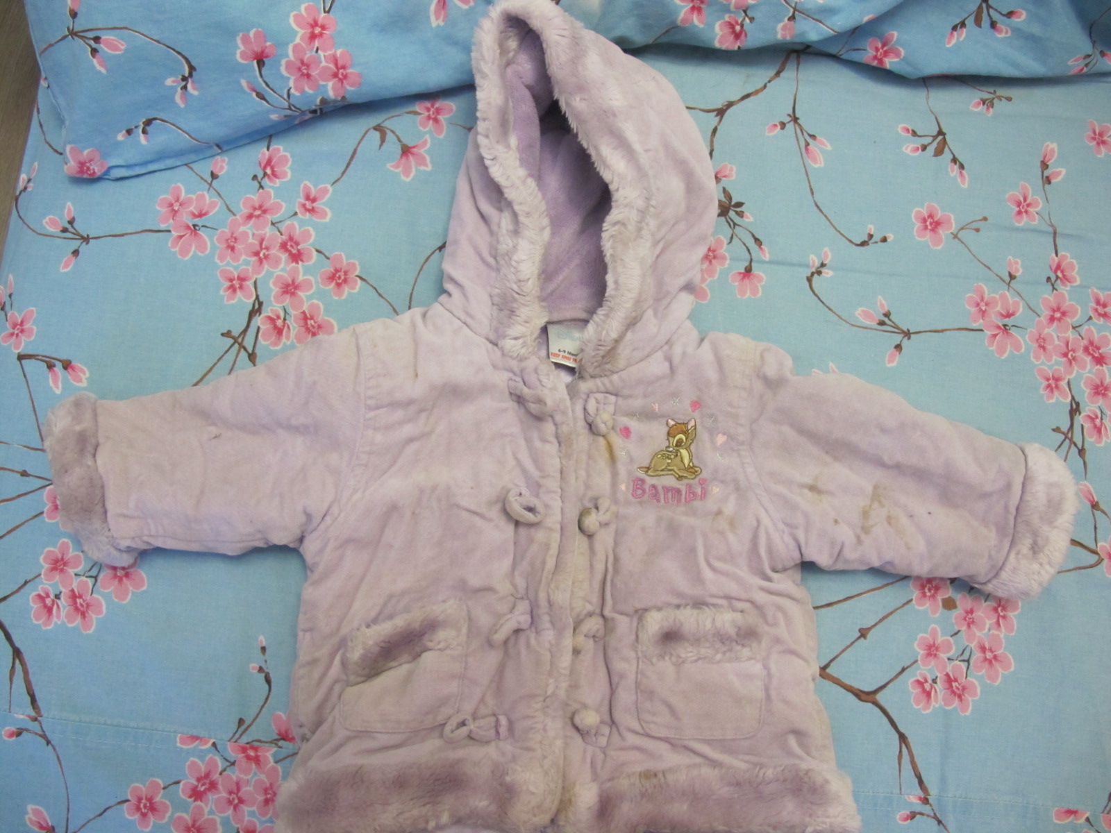 Дисней, с вышивкой Бемби олененка,по краям иск мех, 6-9 мес маркировка, мы носили до 1.7 лет!! сначала как шубка была, потом совсем приталенная)